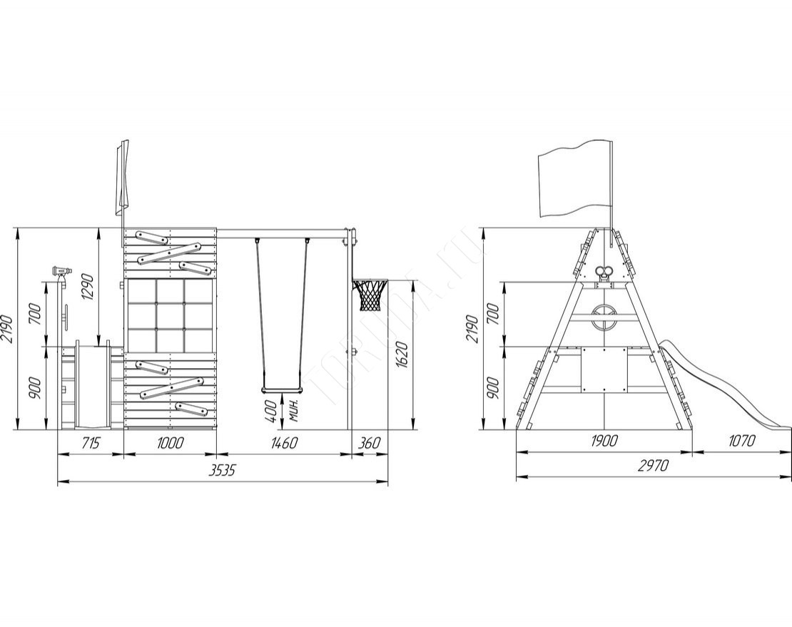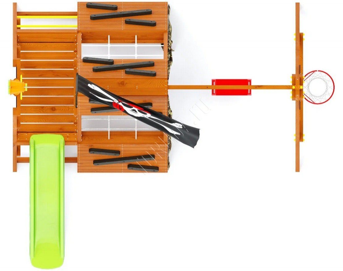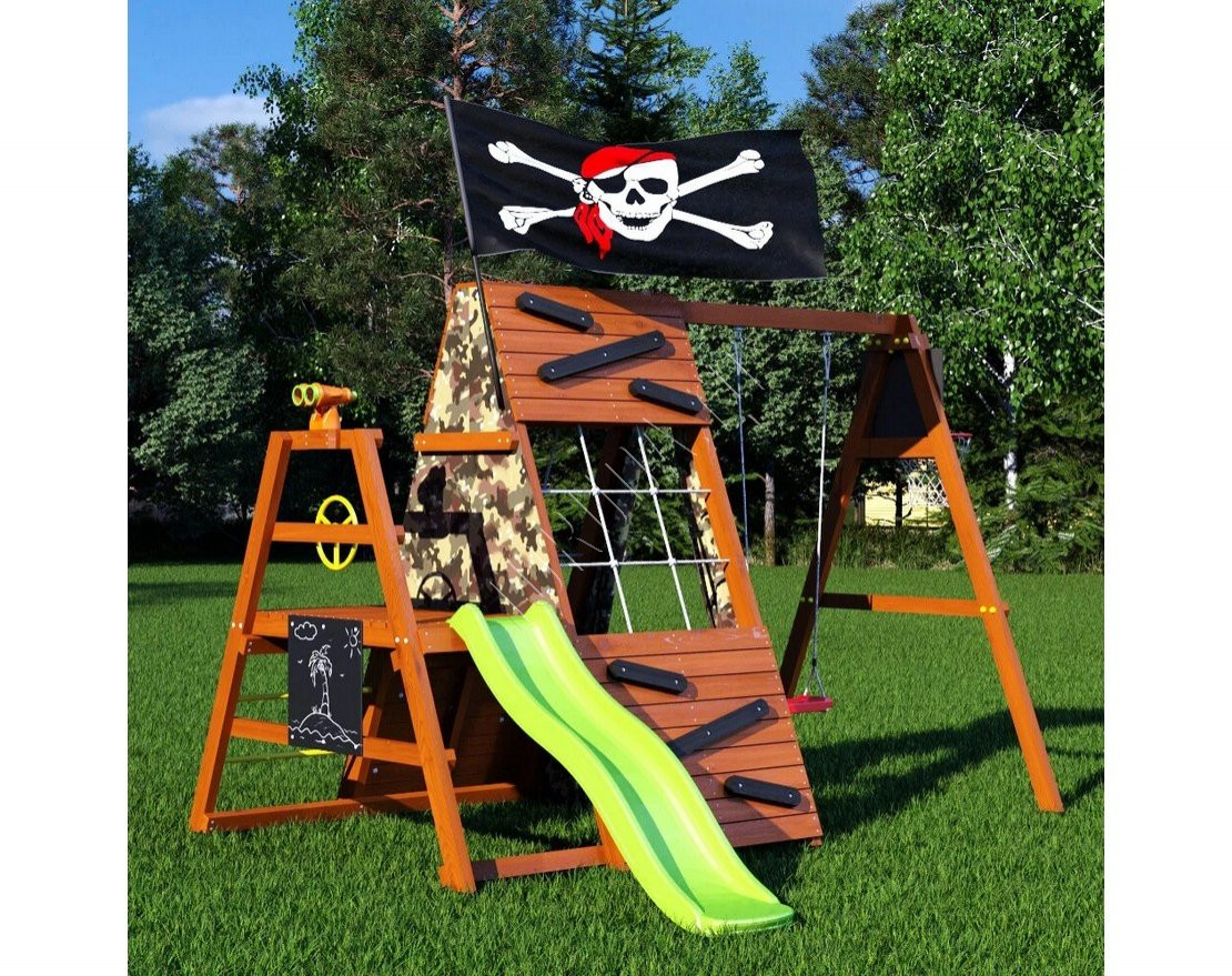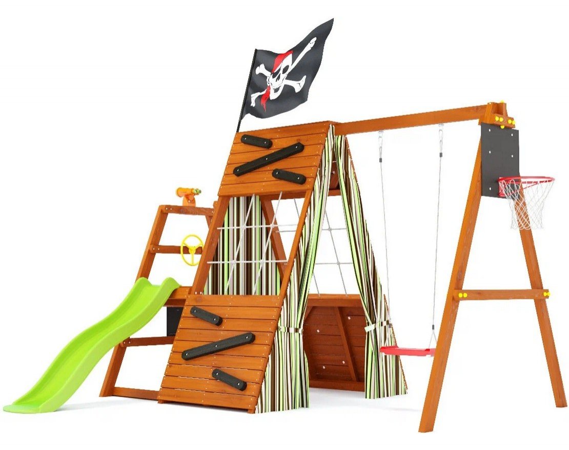 Этот тематический домик со спортивно-игровыми функциями – настоящее убежище для детей, где они могут играть, заниматься спортом и развиваться.