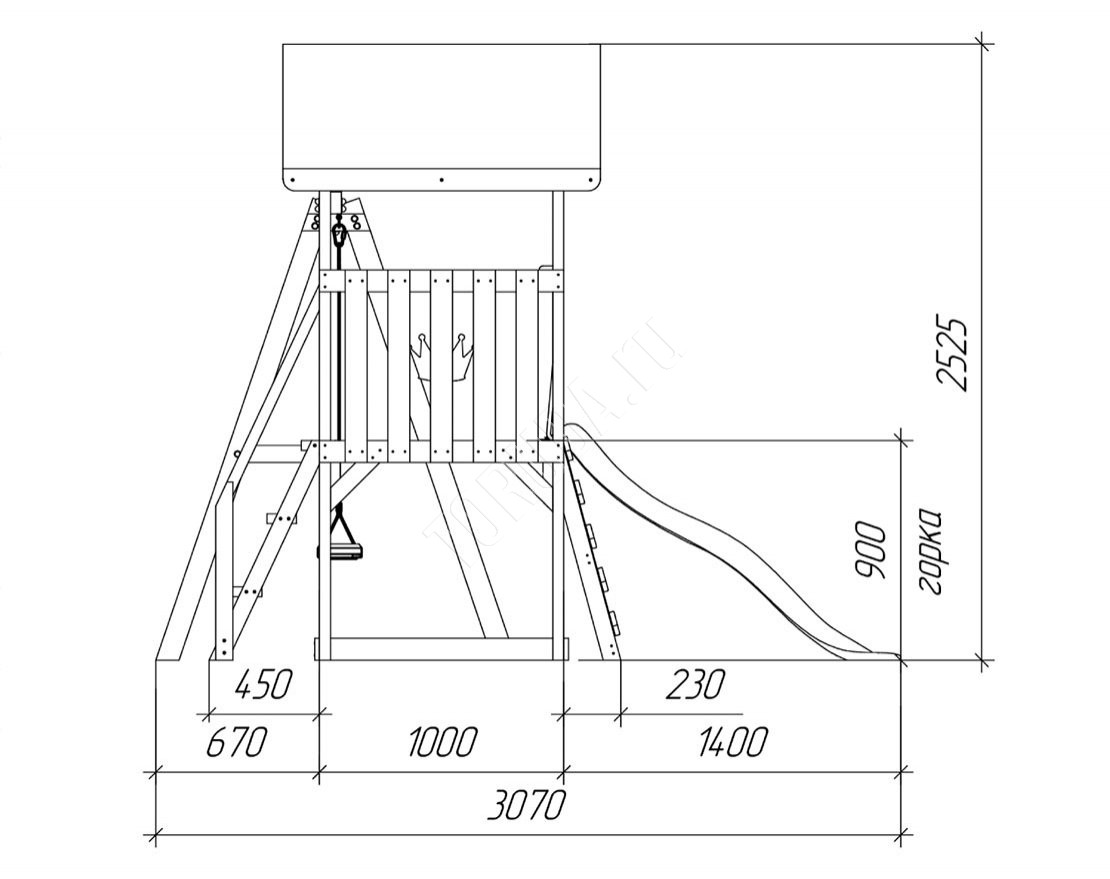 - Качел. балка брус 70х70 мм, детали 45х90 мм