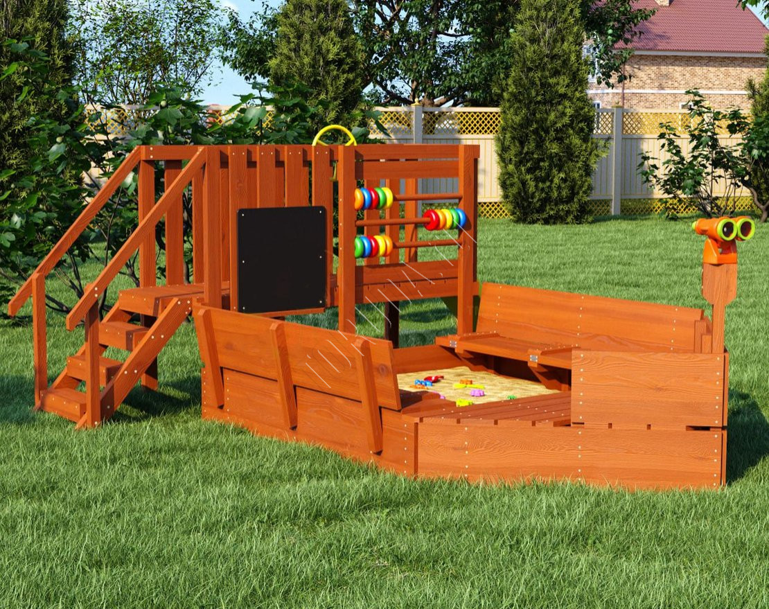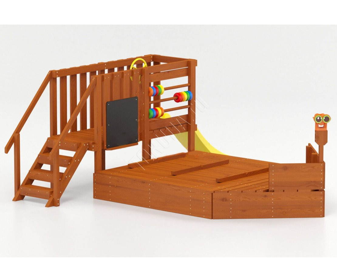 Представляет собой полноценный песочный дворик, который обеспечит ребёнку не только увлекательные игры на свежем воздухе, но и развитие моторики, координации движений, логического мышления и математических навыков.