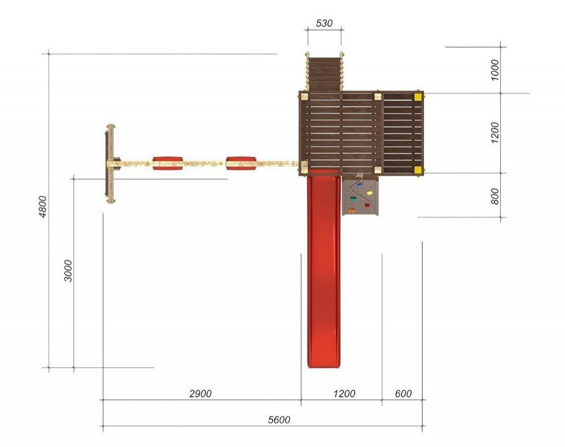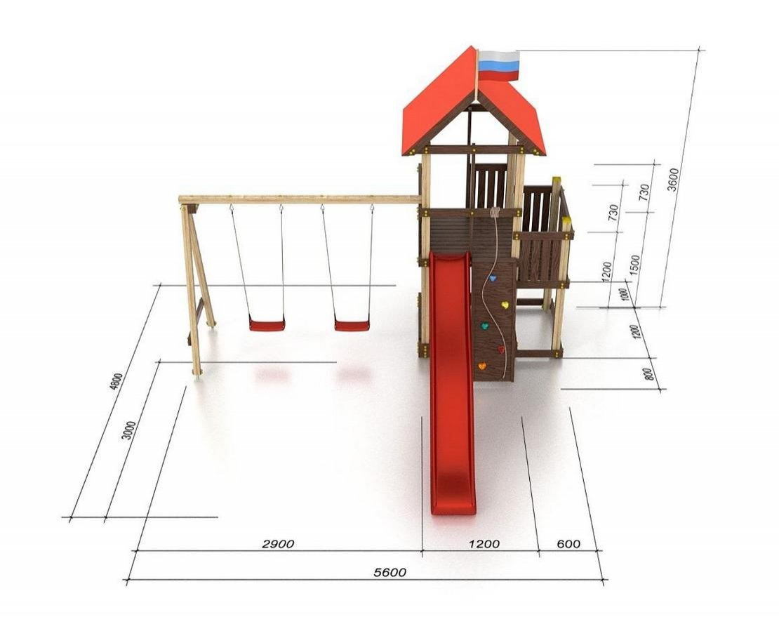 Для максимальной защиты ребёнка от травм, все углы имеют закруглённую форму, крепеж надежно скрыт пластиковыми заглушками. Опоры изготовлены из клееного бруса толщиной 90*90 мм.